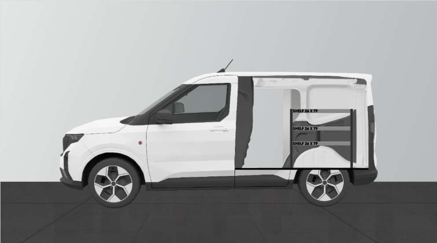 Eine kürzere Fahrzeugeinrichtung für alle, die die Breite ihres Ford Courier L1 beibehalten möchten. Die Einrichtung ist 262,5 mm tief und bietet gute Aufbewahrungsmöglichkeiten für Kleinteile, z. B. Schraubenpackungen und kleinere Artikel, geeignet für Hausmeister, Elektriker und Heizungs- und Sanitärinstallateure. Die Einrichtung passt zu Fahrzeugen mit und ohne Seitentüren, und es besteht die Möglichkeit, die Einrichtung durch unsere cleveren Modulboxen zu ergänzen. Die Ergänzung der Regalwände durch unsere Smartboxen ist ebenfalls eine beliebte Alternative, um den Stauraum zu maximieren.