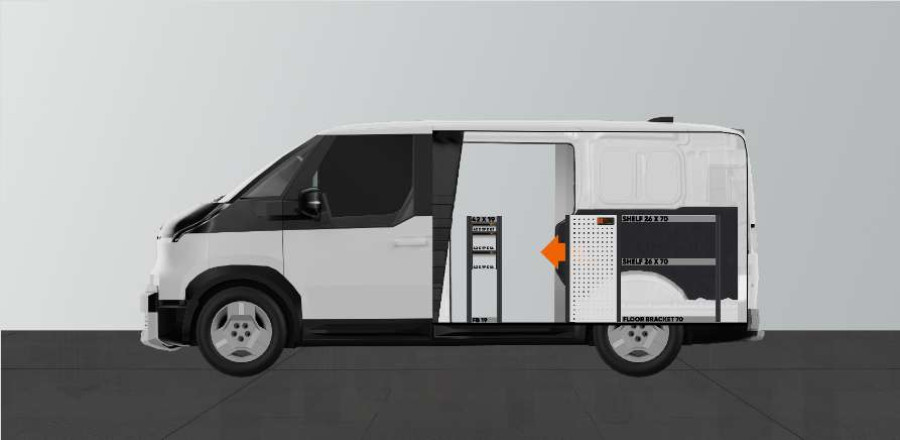 Möchten Sie Ihren Kia PV5 L2H1mit einem weiteren Regal ausstatten? Diese Einrichtung ermöglicht es Ihnen, die Breite im Fahrzeuginneren beizubehalten, da die Tiefe der Einrichtung 260 mm beträgt. Die Einrichtung hat 4 verschieden große Schubladen auf Kugellagerschienen, mit denen sich unterschiedliche Aufbewahrungsmöglichkeiten schaffen lassen. Diese können durch Einsätze ergänzt werden, um Ordnung in Ihr Kleinteilsortiment zu bringen. Der Regalstauraum hinter der Schubladeneinheit wird häufig mit Modulboxen ergänzt. Das verteilte Ladegewicht in den Schubladen auf den Kugellagerschienen beträgt 35 kg/St. Die Schubladen-Innenmaße sind B: 163, T: 387, H: 60 und H: 130 (mm).