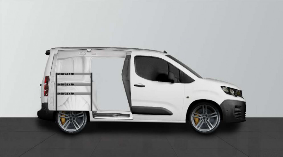 Eine kürzere Fahrzeugeinrichtung für alle, die die Breite ihres CITROËN BERLINGO, OPEL COMBO, PEUGEOT PARTNER & TOYOTA PROACE CITY L1 beibehalten möchten. Die Einrichtung ist 262,5 mm tief und bietet gute Aufbewahrungsmöglichkeiten für Kleinteile, z. B. Schraubenpackungen und kleinere Artikel, geeignet für Hausmeister, Elektriker und Heizungs- und Sanitärinstallateure. Die Einrichtung passt zu Fahrzeugen mit und ohne Seitentüren, und es besteht die Möglichkeit, die Einrichtung durch unsere cleveren Modulboxen zu ergänzen. Die Ergänzung der Regalwände durch unsere Smartboxen ist ebenfalls eine beliebte Alternative, um den Stauraum zu maximieren.