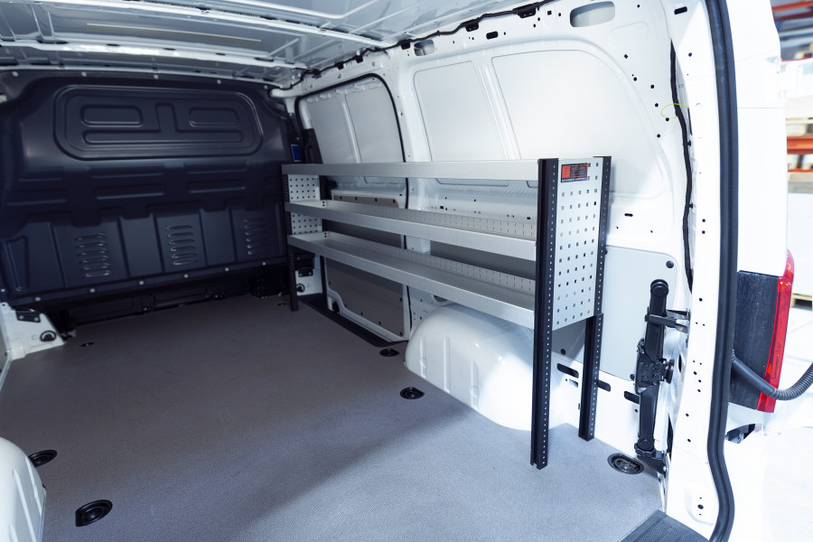 Eine Fahrzeugeinrichtung für alle, die die Breite ihres Maxus e-Deliver 3 L1 beibehalten möchten. Die Einrichtung hat eine Tiefe von nur 262,5 mm und bietet gute Aufbewahrungsmöglichkeiten für Kleinteile, z. B. Schraubenpackungen und kleinere Artikel, geeignet für Hausmeister, Elektriker und Heizungs- und Sanitärinstallateure. Es besteht die Möglichkeit, die Einrichtung durch unsere cleveren Modulboxen zu ergänzen. An den Regalwänden lässt sich durch unsere Smartboxen zusätzliche Staufläche gewinnen.