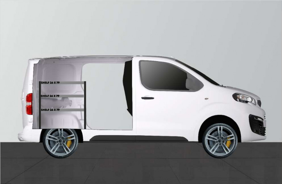 Eine kürzere Fahrzeugeinrichtung für alle, die die Breite ihres Peugeot Expert, Citroen Jumpy, Opel Vivaro, Fiat Scudo & Toyota ProAce L1 beibehalten möchten. Die Einrichtung ist 262,5 mm tief und bietet gute Aufbewahrungsmöglichkeiten für Kleinteile, z. B. Schraubenpackungen und kleinere Artikel, geeignet für Hausmeister, Elektriker und Heizungs- und Sanitärinstallateure. Die Einrichtung passt zu Fahrzeugen mit und ohne Seitentüren, und es besteht die Möglichkeit, die Einrichtung durch unsere cleveren Modulboxen zu ergänzen. Die Ergänzung der Regalwände durch unsere Smartboxen ist ebenfalls eine beliebte Alternative, um den Stauraum zu maximieren.