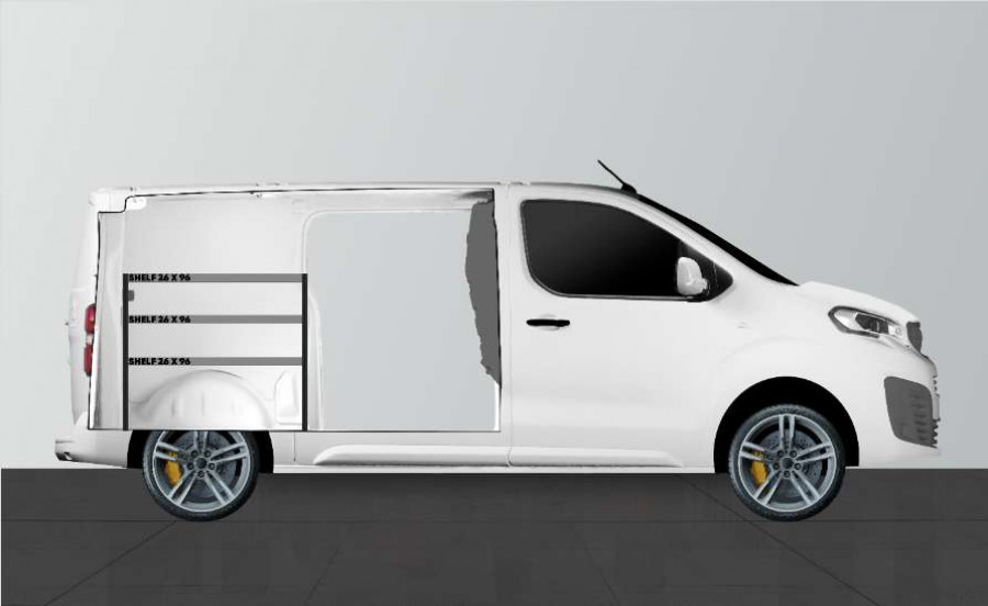Eine kürzere Fahrzeugeinrichtung für alle, die die Breite ihres Peugeot Expert, Citroën Jumpy, Opel Vivaro, Fiat Scudo & Toyota ProAce L2 beibehalten möchten. Die Einrichtung ist 262,5 mm tief und bietet gute Aufbewahrungsmöglichkeiten für Kleinteile, z. B. Schraubenpackungen und kleinere Artikel, geeignet für Hausmeister, Elektriker und Heizungs- und Sanitärinstallateure. Die Einrichtung passt zu Fahrzeugen mit und ohne Seitentüren, und es besteht die Möglichkeit, die Einrichtung durch unsere cleveren Modulboxen zu ergänzen. Die Ergänzung der Regalwände durch unsere Smartboxen ist ebenfalls eine beliebte Alternative, um den Stauraum zu maximieren.