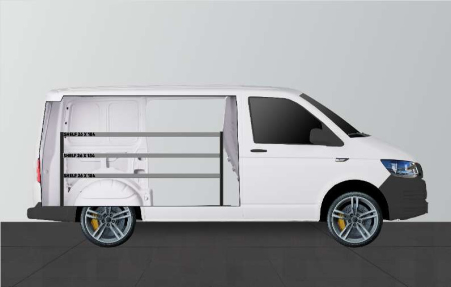 Eine Fahrzeugeinrichtung für alle, die die Breite ihres Volkswagen Transporter L1 beibehalten möchten. Die Einrichtung hat eine Tiefe von nur 262,5 mm und bietet gute Aufbewahrungsmöglichkeiten für Kleinteile, z. B. Schraubenpackungen und kleinere Artikel, geeignet für Hausmeister, Elektriker und Heizungs- und Sanitärinstallateure. Es besteht die Möglichkeit, die Einrichtung durch unsere cleveren Modulboxen zu ergänzen. An den Regalwänden lässt sich durch unsere Smartboxen zusätzliche Staufläche gewinnen.