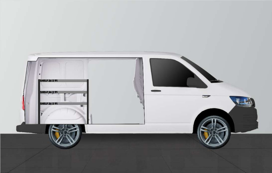 Eine kürzere Fahrzeugeinrichtung für alle, die die Breite ihres Volkswagen Transporter L1 beibehalten möchten. Die Einrichtung ist 262,5 mm tief und bietet gute Aufbewahrungsmöglichkeiten für Kleinteile, z. B. Schraubenpackungen und kleinere Artikel, geeignet für Hausmeister, Elektriker und Heizungs- und Sanitärinstallateure. Die Einrichtung passt zu Fahrzeugen mit und ohne Seitentüren, und es besteht die Möglichkeit, die Einrichtung durch unsere cleveren Modulboxen zu ergänzen. Die Ergänzung der Regalwände durch unsere Smartboxen ist ebenfalls eine beliebte Alternative, um den Stauraum zu maximieren.