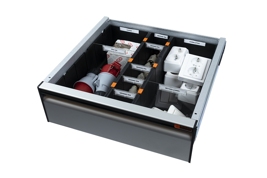 Sehr praktische Einsatzschublade für Kleinteile und Sortimentsbestandteile. Die Einsatzschubladen werden montiert und passen in all unsere Schubladen. Ergänzen Sie sie mit Trennwänden, um die Einsatzschubladen in mehrere Fächer und unterschiedlich tief zu unterteilen. Jede Einsatzschublade und jede Trennwand verfügt über ein Etikettenfach zur Beschriftung, um beste Voraussetzungen für Ordnung in Ihrem Transporter zu schaffen. Erhältlich in zwei Höhen, 52,5 mm und 105 mm, sowie in vier Breiten, 70 mm, 80 mm, 105 mm und 157 mm. Gefertigt aus recyceltem PP-Kunststoff.