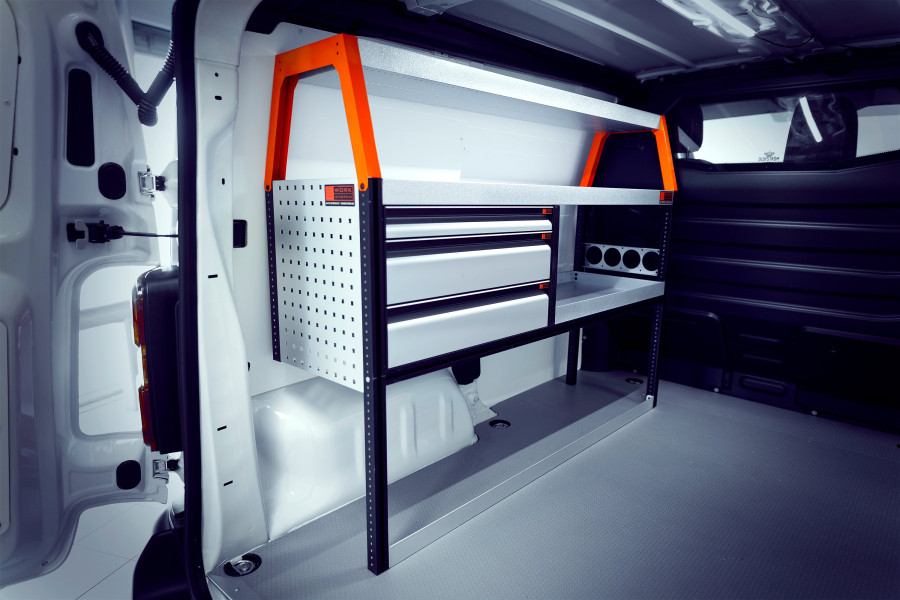 Diese aufgrund ihrer Kombination aus Schubladen und Regalen sehr beliebte Fahrzeugeinrichtung eignet sich für Talento, NV300 & Trafic L2.