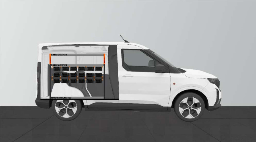 RACK ist eine neue, branchenführende Fahrzeugeinrichtung für den Ford Courier L1. Sie eignet sich perfekt für alle, die eine gute Aufbewahrungsmöglichkeit für ihr Sortiment benötigen, z. B. Schrauben, Kupplungen, Bolzen, Bohrer usw. Die Einrichtung wurde um insgesamt 18 unserer neuen unterteilbaren Modulboxen erweitert. Die Modulboxen werden auf fest montierten Schienen herausgezogen, was einen einfachen Zugang ermöglicht. Die Front der Modulboxen ist so konzipiert, dass sie optimale Zugänglichkeit bietet. Die Kästen können durch ein transparentes Fenster und Querzwischenwände ergänzt werden, die alle 60 mm eingeschoben werden können.