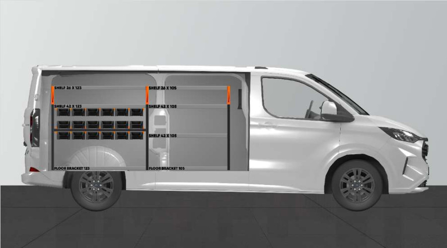 RACK ist eine neue, branchenführende Fahrzeugeinrichtung für den Ford Custom & VW Transporter L2. Sie eignet sich perfekt für alle, die eine gute Aufbewahrungsmöglichkeit für ihr Sortiment benötigen, z. B. Schrauben, Kupplungen, Bolzen, Bohrer usw. Die Einrichtung wurde um insgesamt 18 unserer neuen unterteilbaren Modulboxen erweitert. Die Modulboxen werden auf fest montierten Schienen herausgezogen, was einen einfachen Zugang ermöglicht. Die Front der Modulboxen ist so konzipiert, dass sie optimale Zugänglichkeit bietet. Die Kästen können durch ein transparentes Fenster und Querzwischenwände ergänzt werden, die alle 60 mm eingeschoben werden können.