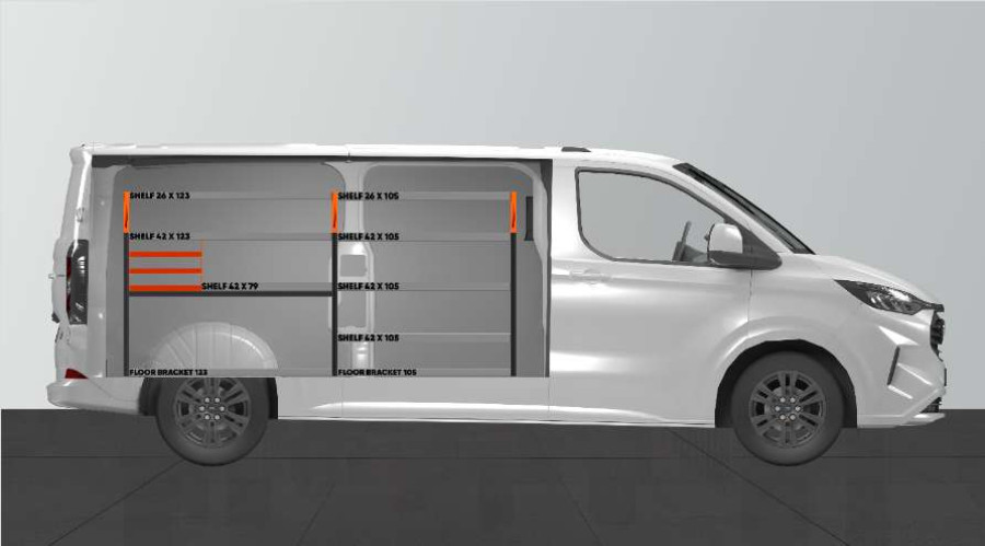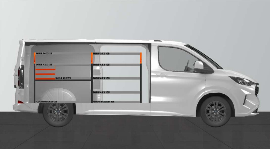 Eine beliebte Einrichtung für alle, die gute Aufbewahrungsmöglichkeiten für ihr Kleinteilsortiment sowie Werkzeugtaschen/-koffer und Maschinen benötigen. Diese Serviceeinrichtung enthält drei Sortimentskastenhalterungen, die an einen der beliebtesten Sortimentskästen auf dem Markt angepasst sind: Racco Carrylight. Die Einrichtung kann auf Wunsch um diese Sortimentskästen ergänzt werden. Die Fahrzeugeinrichtung passt perfekt zu Ihrem Ford Custom & VW Transporter L2.