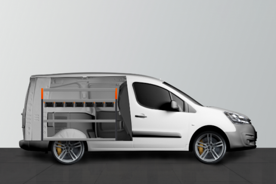 Ein V-Basic Regal mit ausziehbaren Modulboxen zum unterhängen für Ihren Citroën Berlingo & Peugeot Partner L2.
