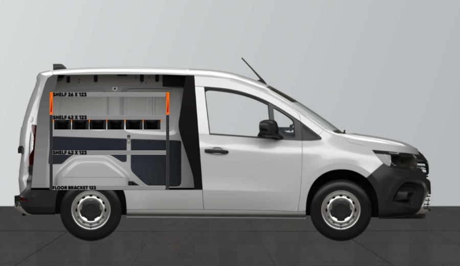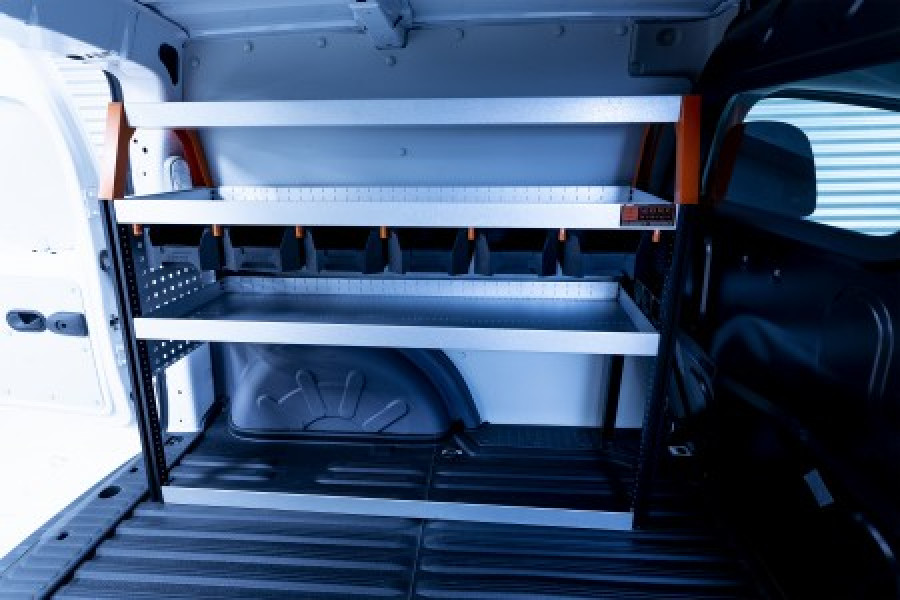 Ein V-Basic Regal mit ausziehbaren Modulboxen zum unterhängen für Ihren Kangoo Citan Townstar L1.