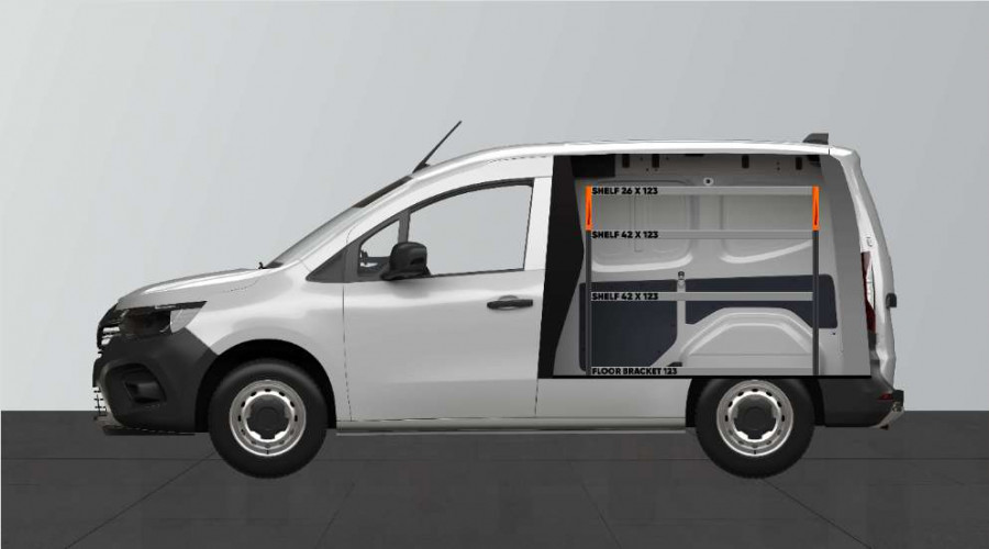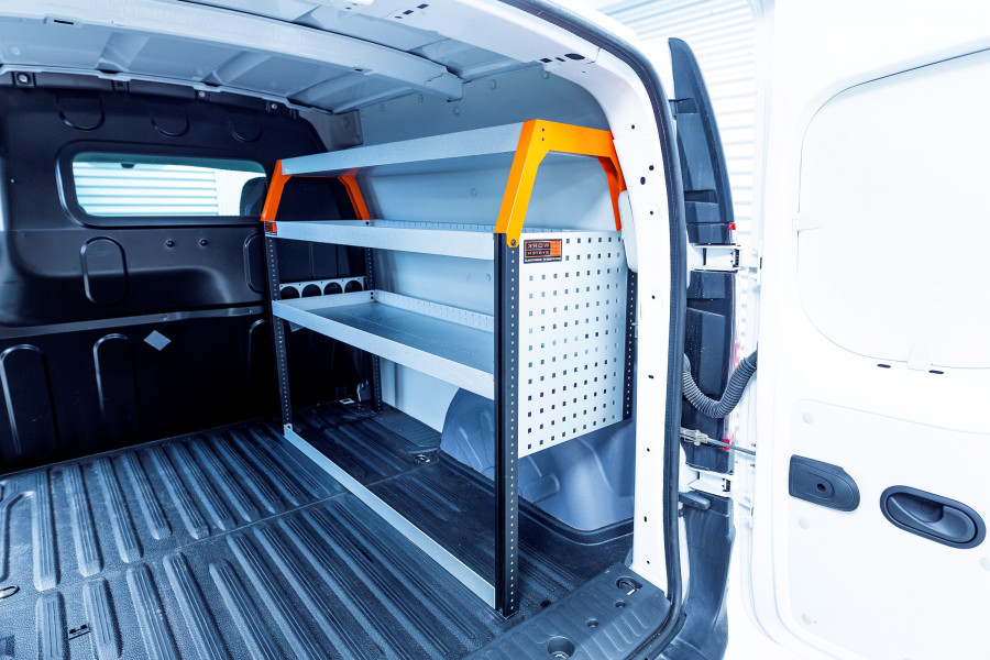 Eine Fahrzeugeinrichtung für Ihren Mercedes Citan, Renault Kangoo & Nissan Townstar, die gute Aufbewahrungsmöglichkeiten für Werkzeugtaschen/-koffer, Maschinen und Kleinteile bietet. Die Regalböden der Einrichtung haben eine Tiefe von 420 mm, dank derer sich die meisten auf dem Markt erhältlichen Werkzeugtaschen/-koffer problemlos verstauen lassen. Das obere Regal mit 262,5 mm wird oft durch unsere Modulboxen ergänzt, um Platz für die Aufbewahrung von Kleinteilen zu schaffen. Vergessen Sie nicht, die Werkzeugtafel der Regalwand zu nutzen.
