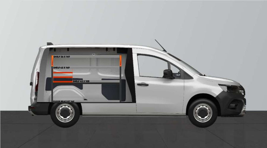 Eine beliebte Einrichtung für alle, die gute Aufbewahrungsmöglichkeiten für ihr Kleinteilsortiment sowie Werkzeugtaschen/-koffer und Maschinen benötigen. Diese Serviceeinrichtung enthält drei Sortimentskastenhalterungen, die an einen der beliebtesten Sortimentskästen auf dem Markt angepasst sind: Racco Carrylight. Die Einrichtung kann auf Wunsch um diese Sortimentskästen ergänzt werden. Die Fahrzeugeinrichtung passt perfekt zu Ihrem Mercedes Citan, Renault Kangoo & Nissan Townstar L2.