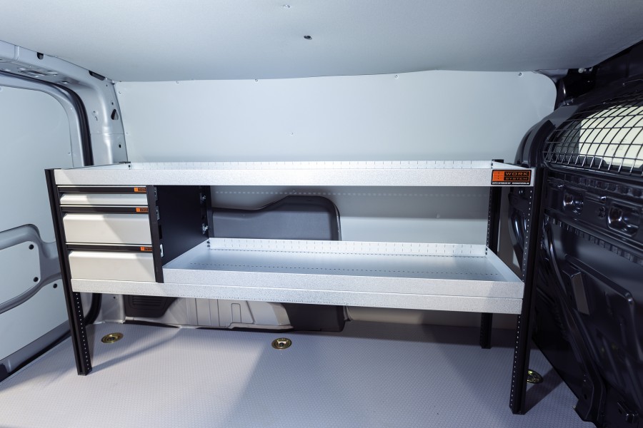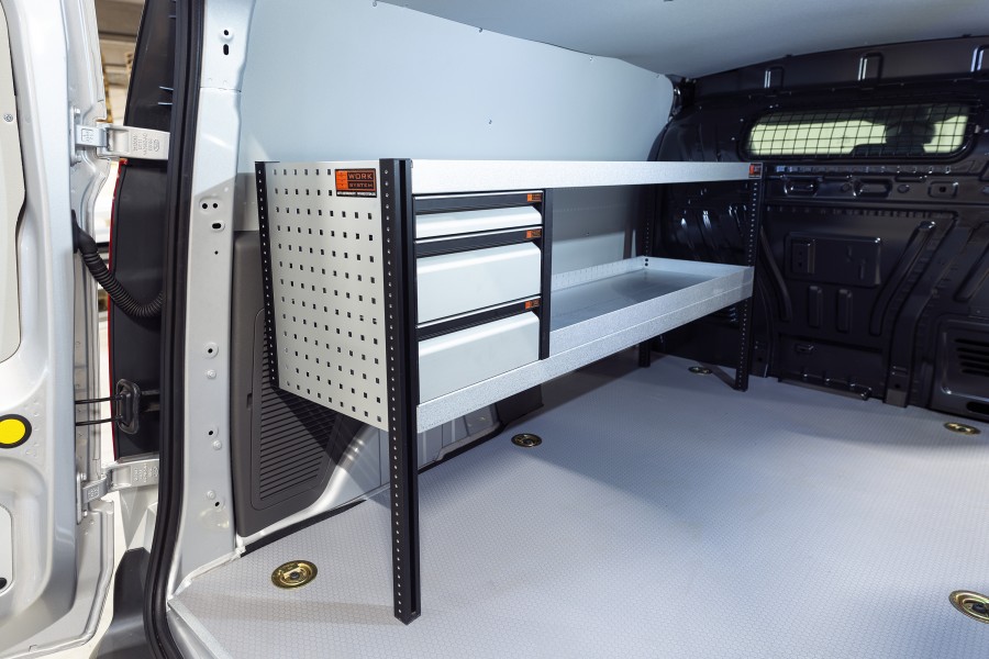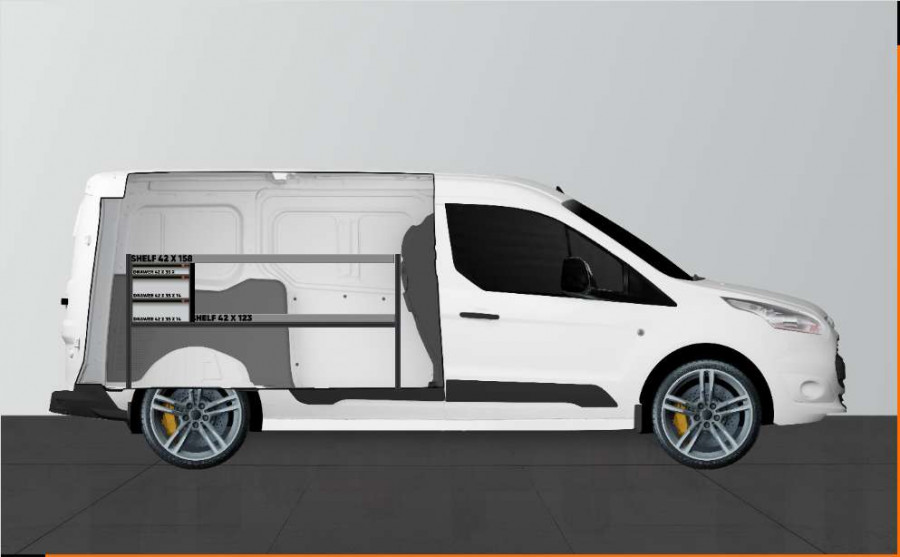 Eine preisgünstige Alternative für alle, die eine Kombination aus Schubladen auf Kugellagerschienen und Regalböden für ihren Ford Connect L2 suchen. Dank einer Tiefe der Einrichtung von 420 mm lassen sich die meisten auf dem Markt erhältlichen Werkzeugtaschen/-koffer problemlos verstauen. Die Schubladen werden gerne durch unsere Schubladeneinsätze und Trennwände ergänzt, die es Ihnen erleichtern, Ordnung in Ihr Kleinteilsortiment zu bringen.