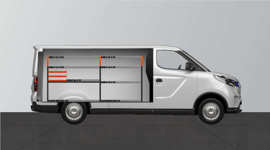 Eine beliebte Einrichtung für alle, die gute Aufbewahrungsmöglichkeiten für ihr Kleinteilsortiment sowie Werkzeugtaschen/-koffer und Maschinen benötigen. Diese Serviceeinrichtung enthält drei Sortimentskastenhalterungen, die an einen der beliebtesten Sortimentskästen auf dem Markt angepasst sind: Racco Carrylight. Die Einrichtung kann auf Wunsch um diese Sortimentskästen ergänzt werden. Die Fahrzeugeinrichtung passt perfekt zu Ihrem Maxus e-Deliver 3 L2.