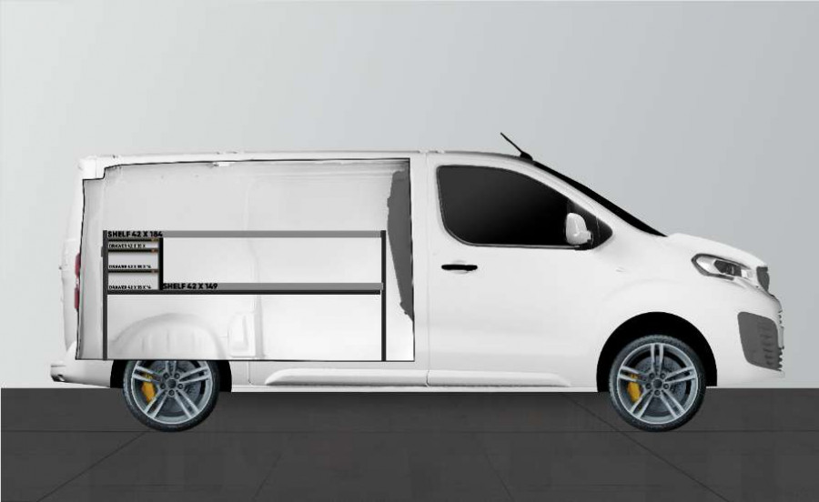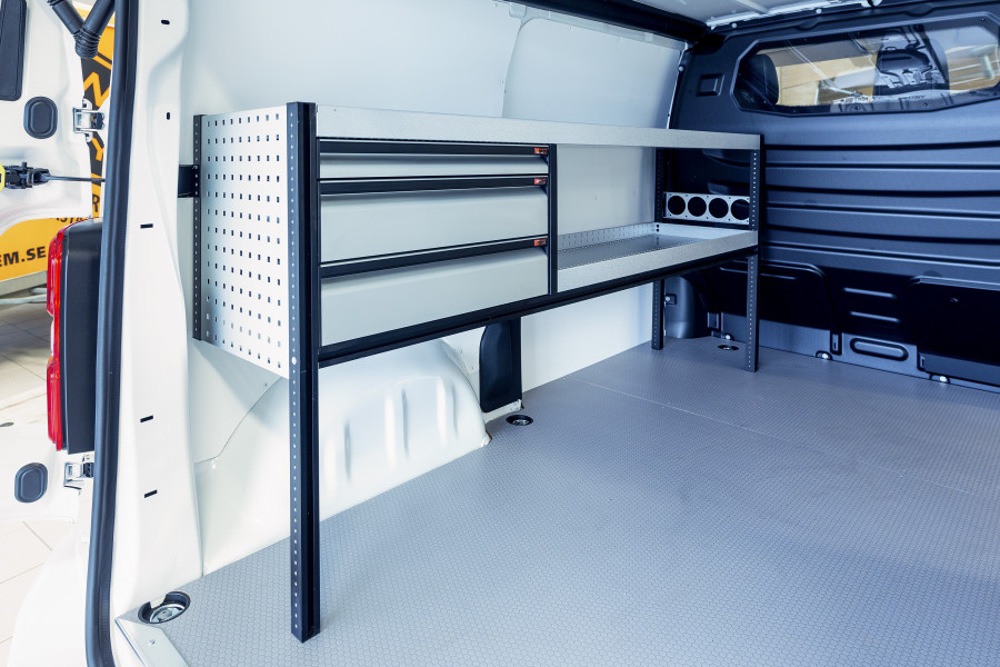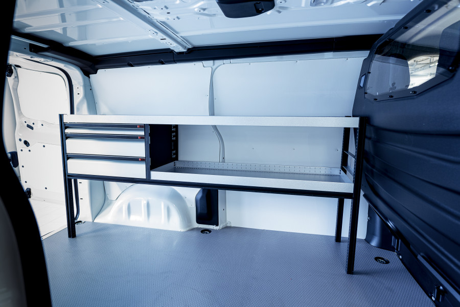Eine preisgünstige Alternative für alle, die eine Kombination aus Schubladen auf Kugellagerschienen und Regalböden für ihren Peugeot Expert, Citroën Jumpy, Opel Vivaro, Fiat Scudo & Toyota ProAce L2 suchen. Dank einer Tiefe der Einrichtung von 420 mm lassen sich die meisten auf dem Markt erhältlichen Werkzeugtaschen/-koffer problemlos verstauen. Die Schubladen werden gerne durch unsere Schubladeneinsätze und Trennwände ergänzt, die es Ihnen erleichtern, Ordnung in Ihr Kleinteilsortiment zu bringen.