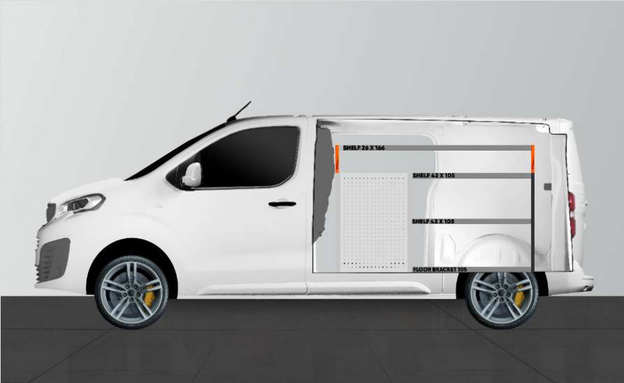 Dies ist eines der beliebtesten Systeme für den Peugeot Expert, Citroën Jumpy, Opel Vivaro, Fiat Scudo & Toyota ProAce L2 mit Seitentür auf der Seite der Einrichtung. Die Einrichtung bietet gute Aufbewahrungsmöglichkeiten für Werkzeugtaschen/-koffer, Maschinen und Kleinteile. Sie umfasst eine Schubladeneinheit mit 5 Schubladen in verschiedenen Größen, damit jeder Ausrüstungsgegenstand seinen Platz erhält. Hinter den Schubladen befindet sich eine Werkzeugtafel, die zusätzliche Aufhängungsmöglichkeiten im Fahrzeug bietet. Die Schubladen auf Kugellagerschienen werden häufig durch unsere neuen Schubladeneinsätze und Trennwände ergänzt, um maximale Ordnung und Übersichtlichkeit zu gewährleisten. Die Regalwand wird gerne auch durch unsere Smartboxen ergänzt, um den Stauraum zu maximieren.