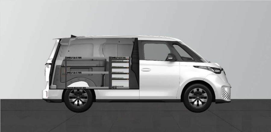 Dies ist eines der beliebtesten Systeme für den VOLKSWAGEN ID BUZZ L1. Die Einrichtung bietet gute Aufbewahrungsmöglichkeiten für Werkzeugtaschen/-koffer, Maschinen und Kleinteile. Sie umfasst eine Schubladeneinheit mit 5 Schubladen in verschiedenen Größen, damit jedes Teil der Ausrüstung seinen Platz erhält. Die Schubladen auf Kugellagerschienen werden häufig durch unsere neuen Schubladeneinsätze und Trennwände ergänzt, um maximale Ordnung und Übersichtlichkeit zu gewährleisten. Die Ergänzung der Regalwand durch unsere Smartboxen ist ebenfalls eine beliebte Alternative, um den Stauraum zu maximieren.