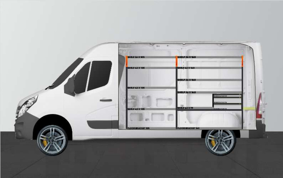 Diese aufgrund ihrer Kombination aus Schubladen und Regalen sehr beliebte Fahrzeugeinrichtung eignet sich für Movano, Master & NV400.