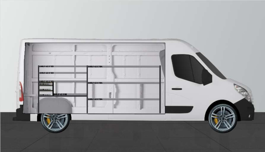 Eine preisgünstige Alternative für alle, die eine Kombination aus Schubladen auf Kugellagerschienen und Regalböden für ihren Opel Movano, Renault Master & Nissan NV400 suchen. Dank einer Tiefe der Einrichtung von 420 mm lassen sich die meisten auf dem Markt erhältlichen Werkzeugtaschen/-koffer problemlos verstauen. Die Schubladen werden gerne durch unsere Schubladeneinsätze und Trennwände ergänzt, die es Ihnen erleichtern, Ordnung in Ihr Kleinteilsortiment zu bringen.