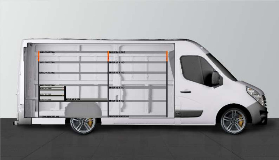 Dies ist eine unserer beliebtesten Fahrzeugeinrichtungen für den Opel Movano, Renault Master & Nissan NV400. LS3 – Die Einrichtung wird u. a. von Hausmeistern, Servicetechnikern, Elektrikern, Heizungs- und Sanitärinstallateuren und Tischlern genutzt. Die Einrichtung bietet gute Aufbewahrungsmöglichkeiten für Werkzeugtaschen/-koffer, Maschinen, Verbrauchsmaterialien und Ihr Kleinteilsortiment. Die Schubladen werden oft durch unsere Schubladeneinsätze und Trennwände ergänzt. An den Regalwänden lässt sich durch unsere Smartboxen zusätzliche Staufläche gewinnen.