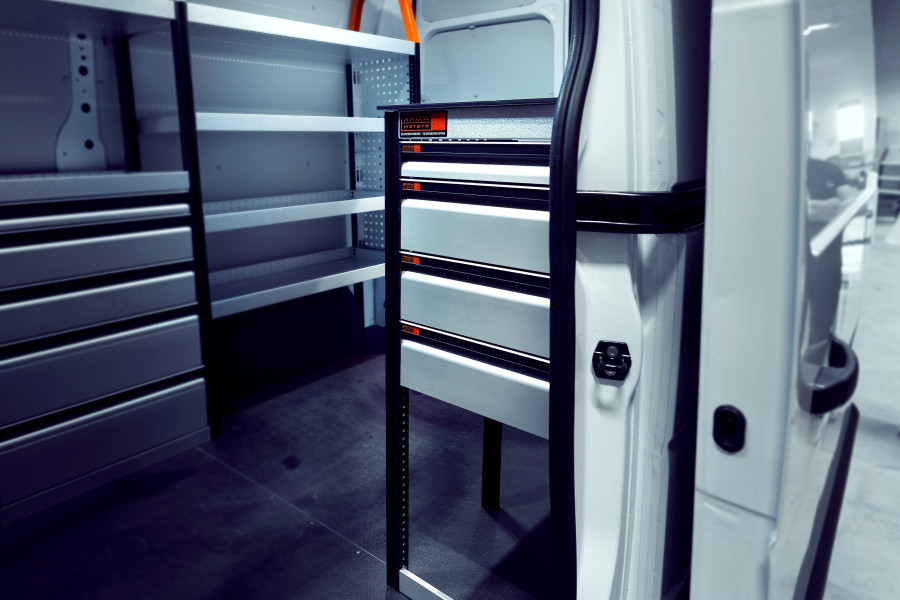 Eines der beliebstesten Fahrzeugregel für Ihren Ford Transit L3H2. Die Einrichtung bietet vielfältige Aufbewahrungsmöglichkeiten, da die Schubladen auf Kugellagerschienen einen einfachen Zugang über die Seitentür bieten; die Schubladen können in Fahrtrichtung herausgezogen werden, um eine gute Übersichtlichkeit zu bieten. Die Schubladen können um Trennwände ergänzt werden, um mehr Ordnung und Struktur beim Kleinteilsortiment zu schaffen. Unsere tiefen Regalböden bieten außerdem gute Aufbewahrungsmöglichkeiten für Werkzeugtaschen/-koffer und kleinere Maschinen. Das verteilte Ladegewicht in den Schubladen der Kugellagerschienen beträgt 35 kg/St. Die Schubladen-Innenmaße sind B: 308, T: 387, H: 60 und H: 130 (mm).
