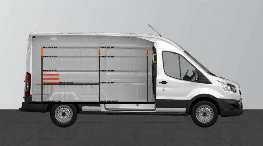 Eine beliebte Einrichtung für alle, die gute Aufbewahrungsmöglichkeiten für ihr Kleinteilsortiment sowie Werkzeugtaschen/-koffer und Maschinen benötigen. Diese Serviceeinrichtung enthält drei Sortimentskastenhalterungen, die an einen der beliebtesten Sortimentskästen auf dem Markt angepasst sind: Racco Carrylight. Die Einrichtung kann auf Wunsch um diese Sortimentskästen ergänzt werden. Die Fahrzeugeinrichtung passt perfekt zu Ihrem Ford Transit L3H2.