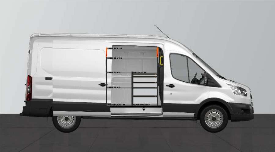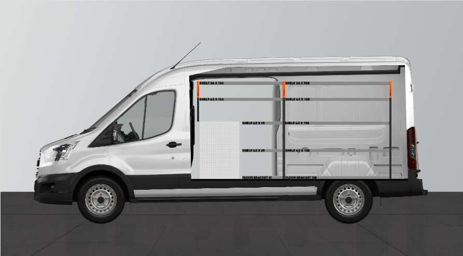 Dies ist eines der beliebtesten Systeme für den Ford Transit L3H2 mit Seitentür auf der Seite der Einrichtung. Die Einrichtung bietet gute Aufbewahrungsmöglichkeiten für Werkzeugtaschen/-koffer, Maschinen und Kleinteile. Sie umfasst eine Schubladeneinheit mit 5 Schubladen in verschiedenen Größen, damit jeder Ausrüstungsgegenstand seinen Platz erhält. Hinter den Schubladen befindet sich eine Werkzeugtafel, die zusätzliche Aufhängungsmöglichkeiten im Fahrzeug bietet. Die Schubladen auf Kugellagerschienen werden häufig durch unsere neuen Schubladeneinsätze und Trennwände ergänzt, um maximale Ordnung und Übersichtlichkeit zu gewährleisten. Die Regalwand wird gerne auch durch unsere Smartboxen ergänzt, um den Stauraum zu maximieren.
