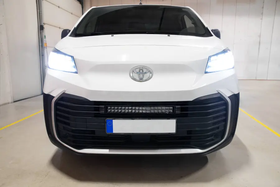 Beleuchten Sie die Dunkelheit in Ihrem Toyota ProAce mit der EXPLOSION MAX 520 mm LED-Leiste zusammen mit einer modellspezifischen Halterung für den Einbau in die Stoßstange für ein dezentes und stilvolles Ergebnis.