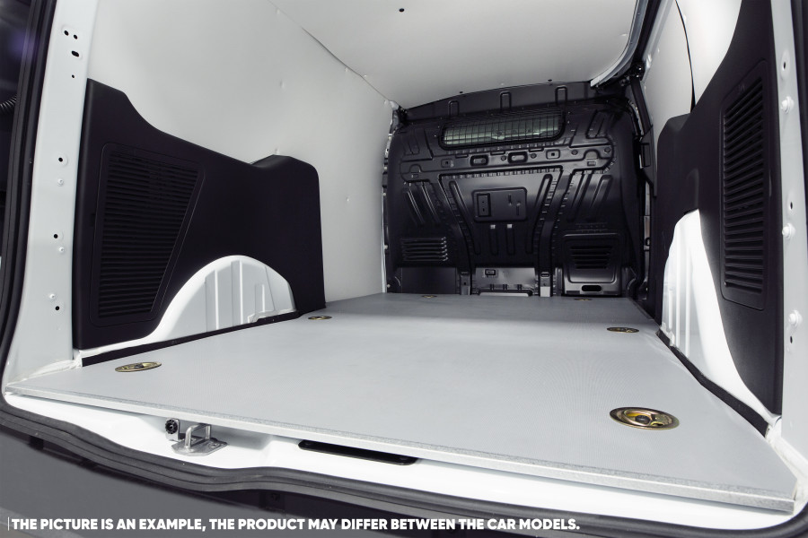 An die Fahrzeugkonturen angepasster Boden in 9 mm Stärke aus Birkenschichtholz mit grauer Antirutsch-Gummierung auf der Oberseite
