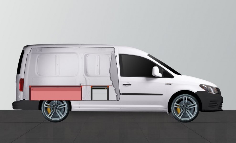Das Unterflursystem ist geeignet für Volkswagen Caddy L2 ab Baujahr 2004 mit Loyds-Wand.