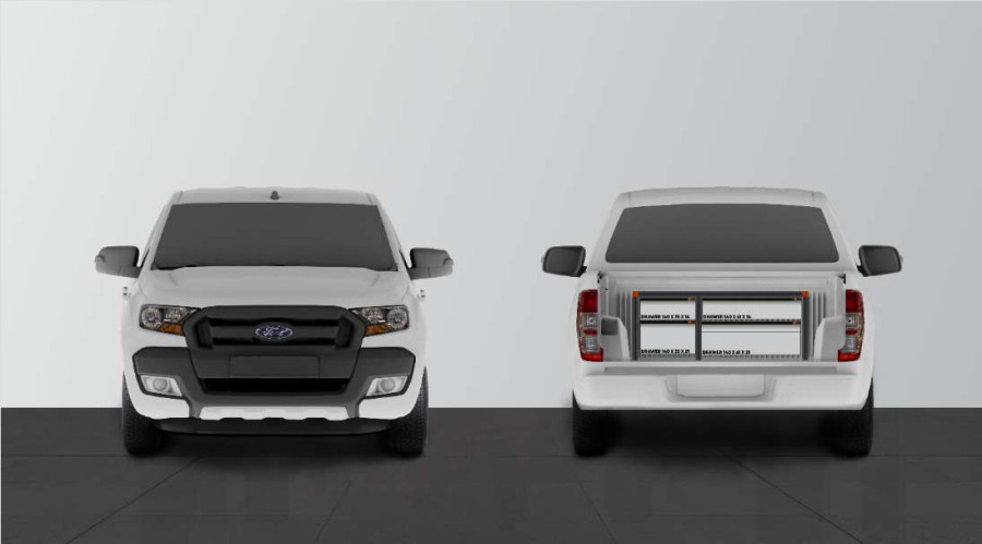 Der maßgeschneiderte Unterflursystem von Work System ist die ultimative Lösung für Sicherheit und Aufbewahrung. Was in den Schubladen verstaut wird, kann z. B. bei einer Vollbremsung nicht wegfliegen. Gleichzeitig muss man nicht in das Auto kriechen, um etwas herauszuholen.